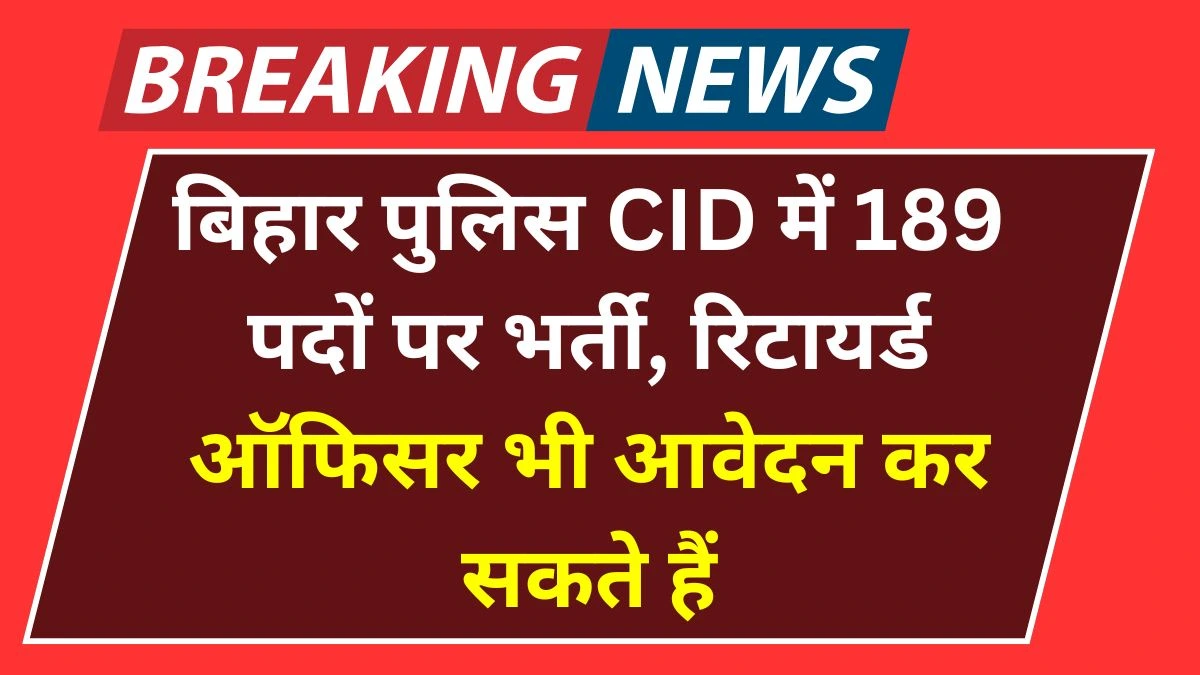 Bihar CID Recruitment 2025: बिहार पुलिस CID में 189 पदों पर भर्ती, रिटायर्ड ऑफिसर भी आवेदन कर सकते हैं
